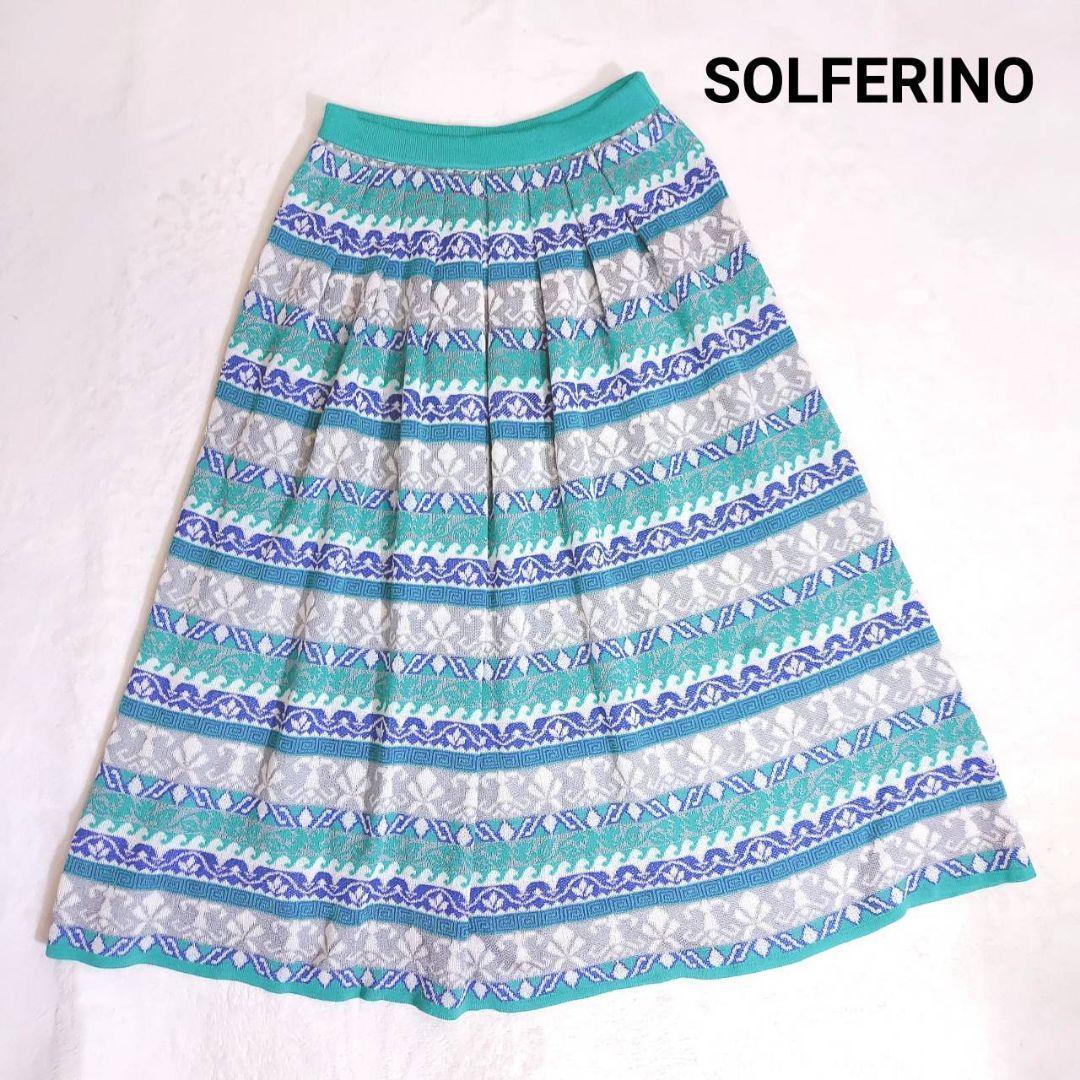- SOLFERINO オリエンタル総柄 ミモレ丈 ニット素材スカート 66241