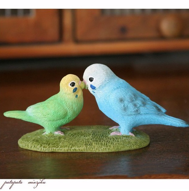 - セキセイインコのキス ダイカイ オブジェ セキセイインコ 置物 鳥 小鳥 インコ 雑貨