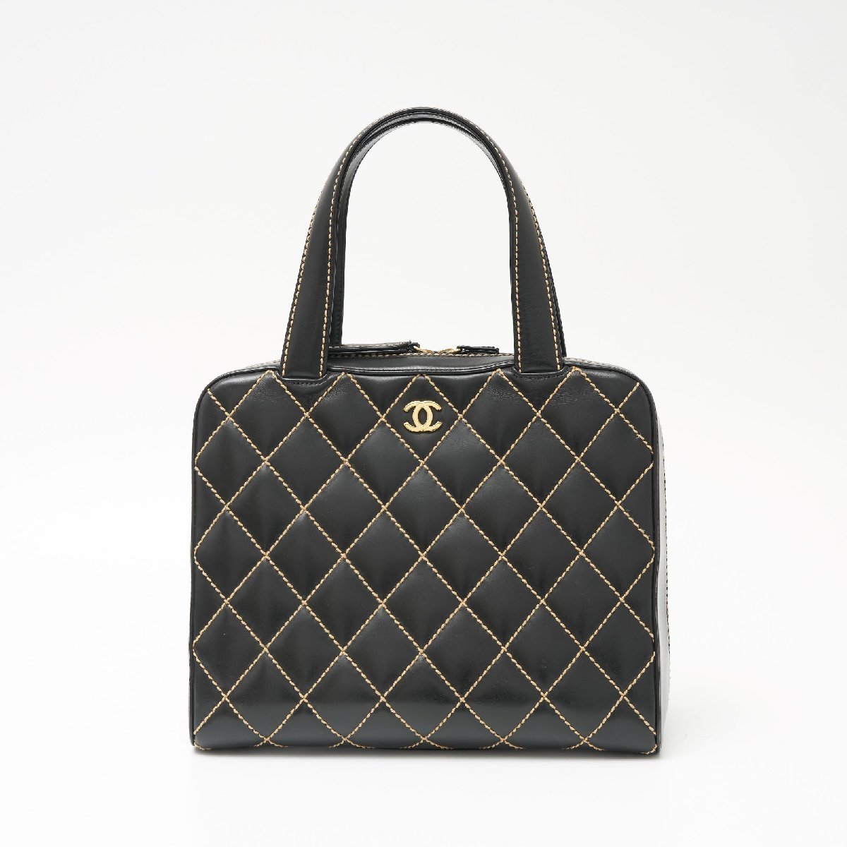 > CHANEL シャネル ワイルドステッチ ハンドバッグ 手提げ レザー ブラック×ゴールド 7番台(2001年頃~製造)ココマーク レディース