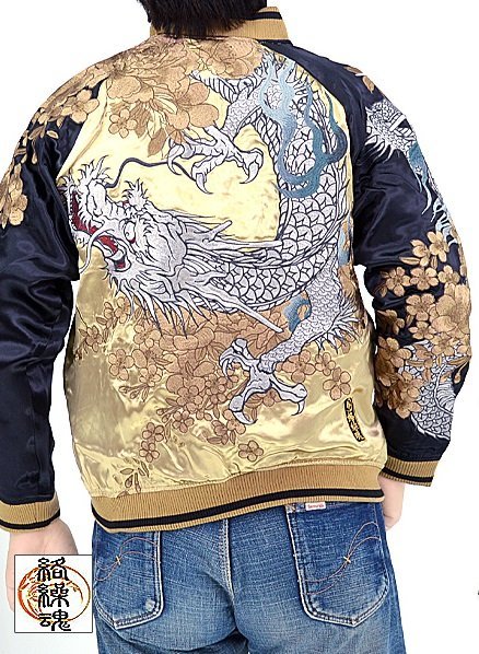 > 粋 画竜点睛リバーシブルスカジャン◆絡繰魂 B色 XLサイズ 234861 和柄 和風 刺繍 スーベニアジャケット 龍 からくり