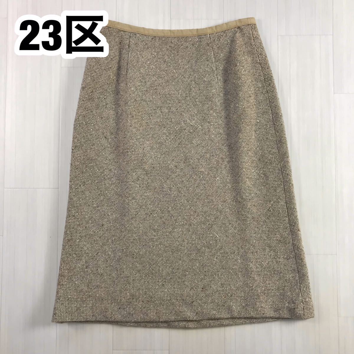 - 23区 ひざ丈 台形スカート 40 ベージュ ウール