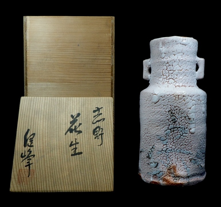 > 昭和ビンテージ 美濃 志野焼 源九郎窯 加藤健作 花生 桃色 在銘品 在銘は「け」 落款は健峰 花器 花瓶 陶芸 共箱 1970年代 KEN512