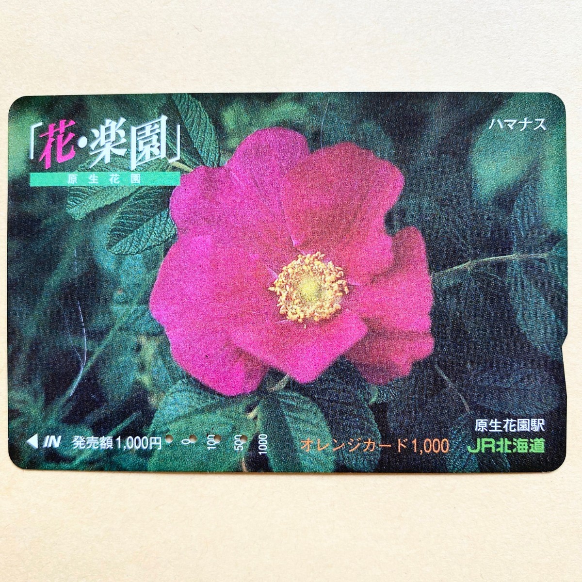 - 【使用済】 花オレンジカード JR北海道 「花・楽園」 ハマナス