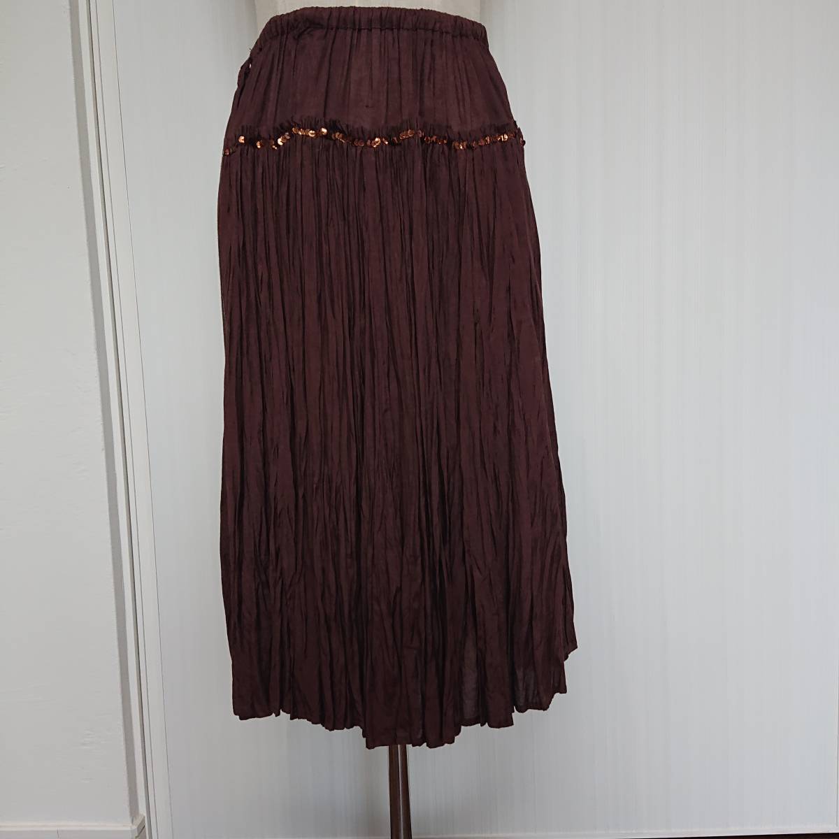 - ブラウン ひざ下丈スカート プリーツスカート サイズM