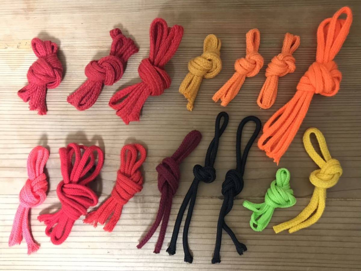 - ハンドメイド★ 紐★9色セット★レッド&オレンジ&ワインレッド&ブラック&イエローグリーン★長さ約47cm〜230cm