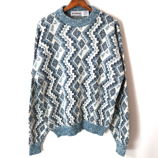 - 80s McGREGOR マックレガー 総柄 アクリル ニットセーター(メンズ L)幾何学 ノルディック ヴィンテージ