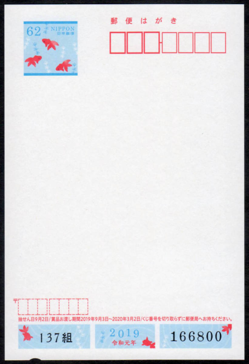 17552B1◆複数出品◆2019年 かもめ~る62円 くぼみ入★暑中見舞はがき 令和元年