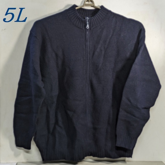 - S7★TOROY/トロイ メンズ ファスナーカーディガン 5L 厚手 毛100% ポケット2 ダークブルー ビッグサイズ 古着