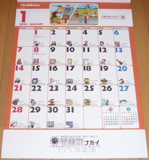 - 送料込み◆カレンダー 英語 デイリーイングリッシュ 2024年・令和6年 壁掛けカレンダー【新品】英語を自然に勉強 365日毎日1語
