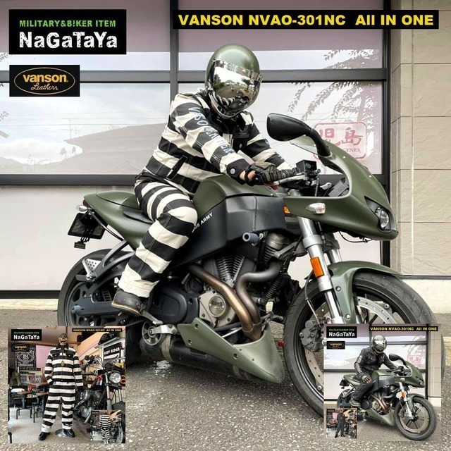 - VANSON バンソン オールインワン フライング ロゴ刺繍 つなぎ NVAO-301NC ボーダー柄 ホワイト×ブラック XLサイズ プリズナー