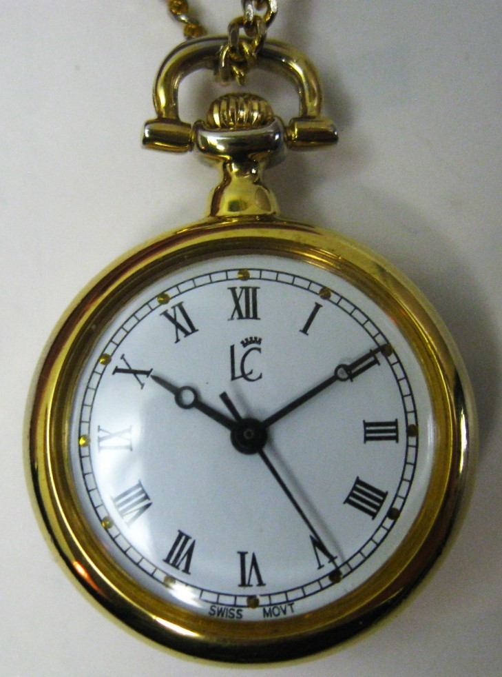 - 【東京 谷中 質屋おぢさん】レディース LC 堤時計 チャーム 3針 裏 紺 七宝 紳士淑女柄 ネックレス付