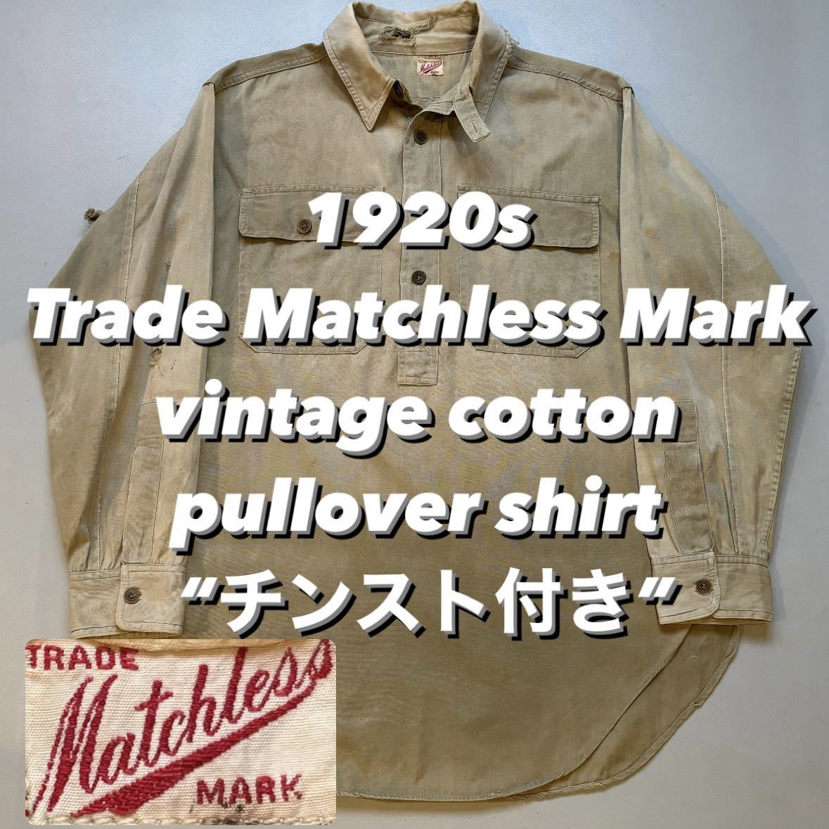 - 1920s Trade Matchless Mark vintage cotton pullover shirt “チンスト付き” 1920年代 ビンテージシャツ コットンシャツ マチ付き