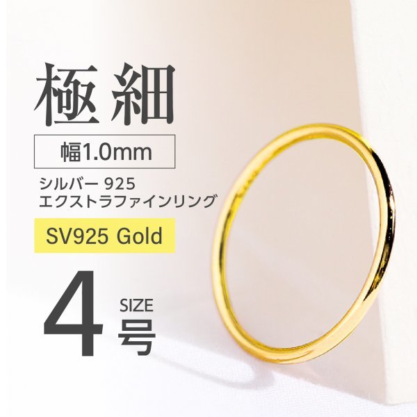 - J011-3 シルバー リング エクストラファイン S925 ゴールドカラー 4号