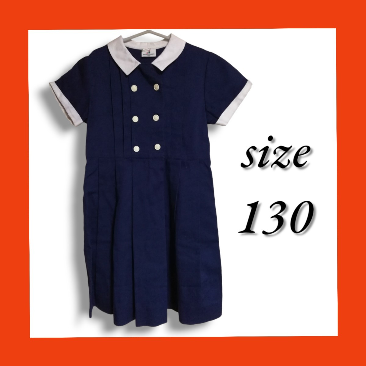 > 【美品】キッズ ワンピース 130cm ネイビー 半袖 シンプル フォーマル 紺 女の子 お受験