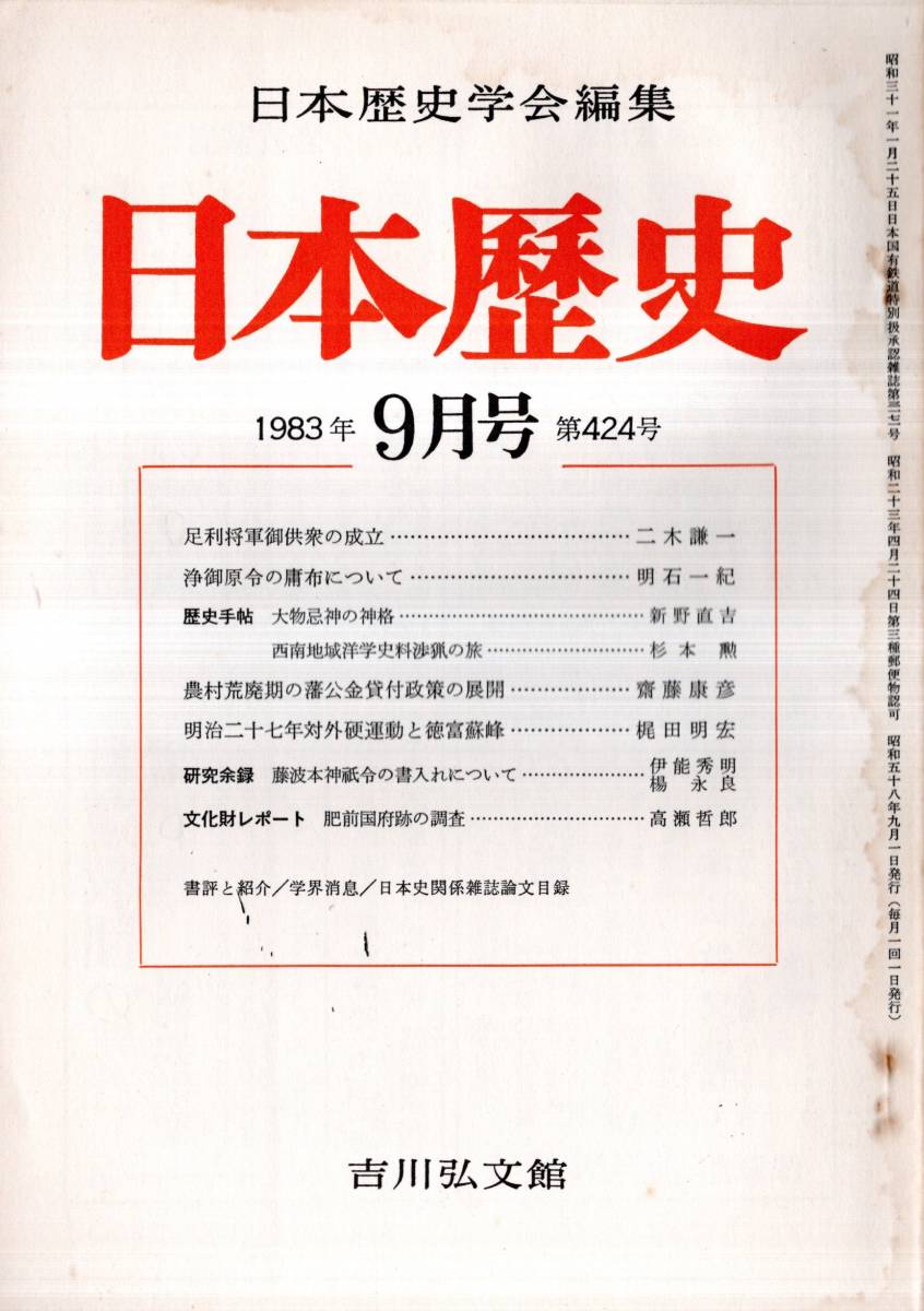 - ※日本歴史第424号 足利将軍御供衆の成立=二木謙一・大物忌神の神格=新野直吉・藤波本神祇令の書入れについて=伊能秀明、楊永良等古書