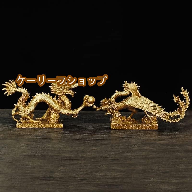 - 【ケーリーフショップ】龍鳳 置物1対 2個セット(銅製) < 風水グッズ 開運グッズ 幸運の置物 > ☆ 龍と鳳凰の置物 龍 鳳凰