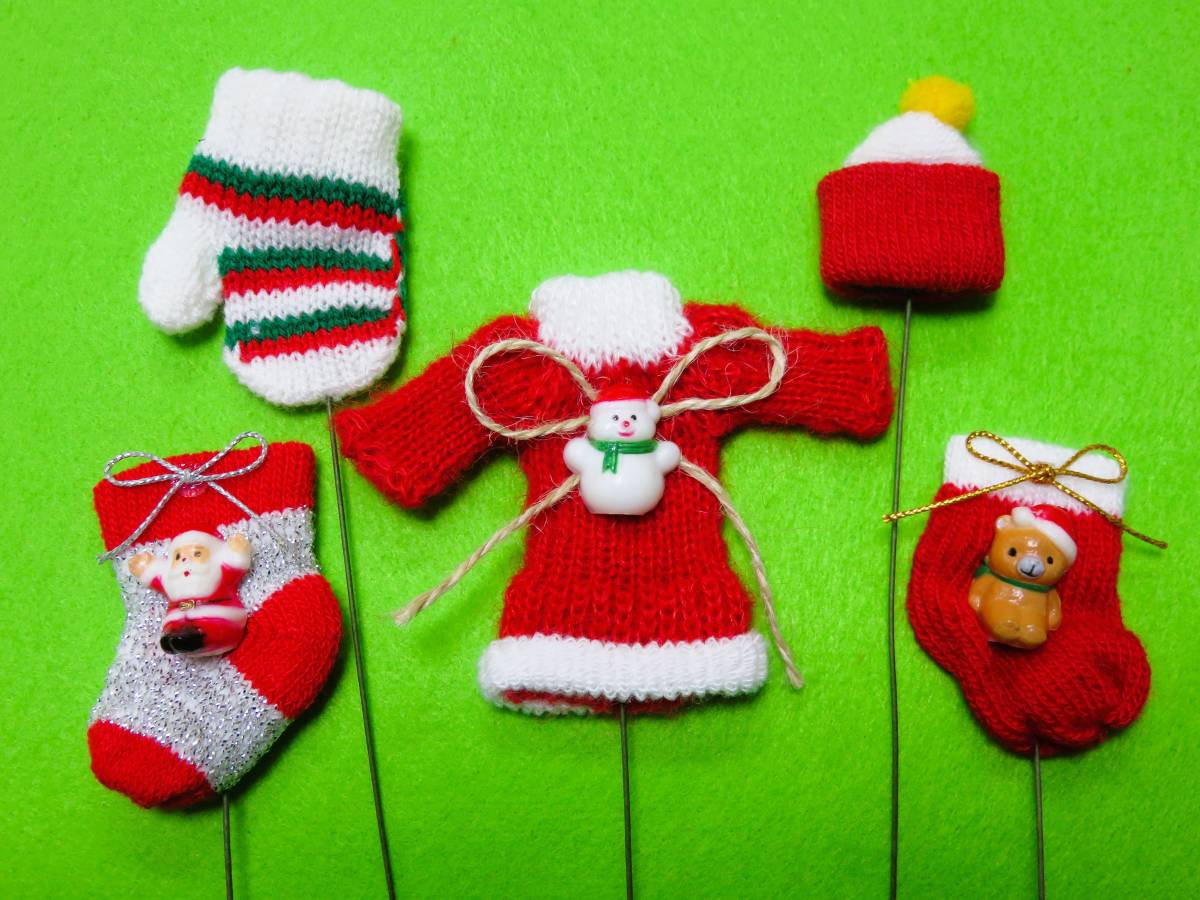 - 【☆X'masミニニットピック☆5本☆】P1 ☆クリスマスアレンジメント 生花 造花 ドライフラワー ブーケ作り 無縫製セーター バザー