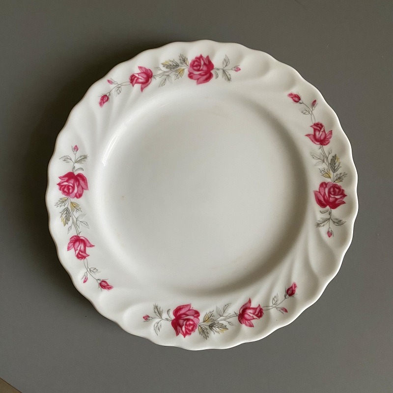 > ◆台湾レトロ◆大同製◆Φ20.5cm 平皿 ケーキ皿 バラ ピンク フリル◆台湾食器◆ヴィンテージ ris136060d