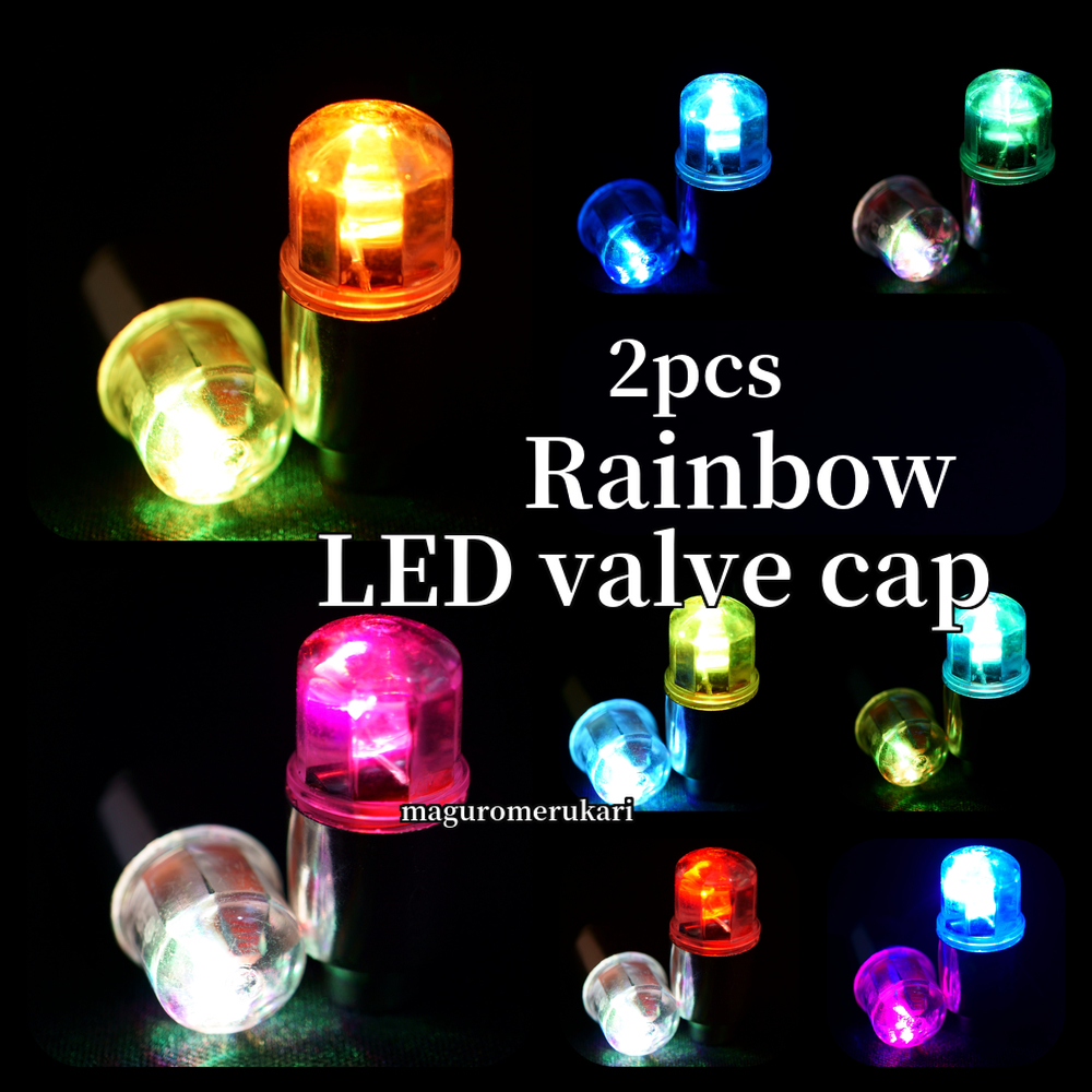 - 2個セット! タイヤLED レインボー エアバルブ キャップ タイヤバルブ ドレスアップ イルミネーション カスタム 車 バイク 原付 自転車に