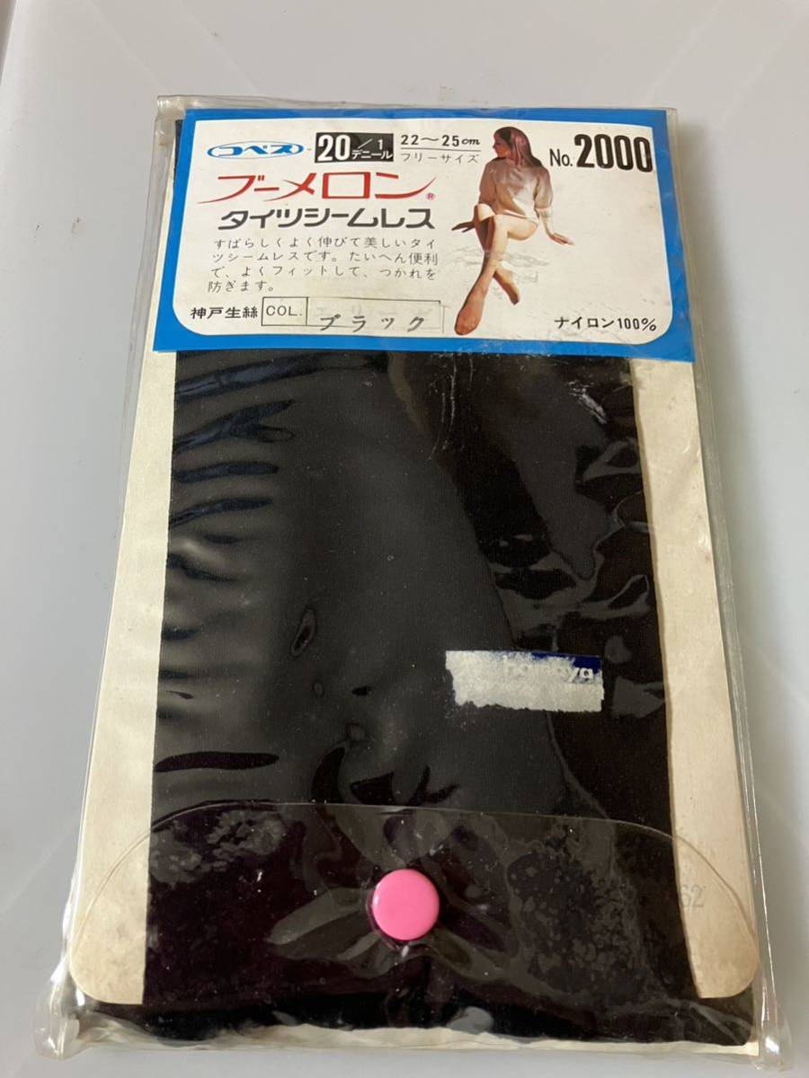 - コベス ブーメロン タイツ シームレス 20デニール フリーサイズ レトロ 昭和 神戸生絲 tights kobes 年代物 seamless ブラック 黒