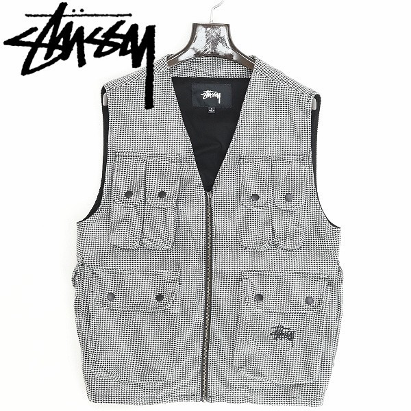 > ◆STUSSY ステューシー 20SS フェス キャンプ アウトドア Houndstooth Work 千鳥格子柄 フラップポケット ワーク ベスト S