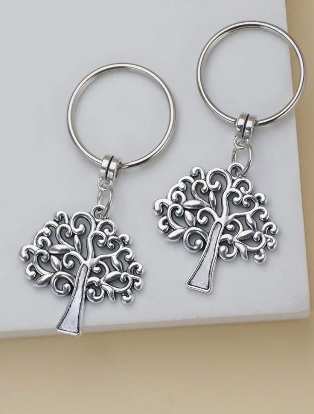 - 新品 木 ウッドキーホルダー シルバー カップル恋人フレンド友達 ペア