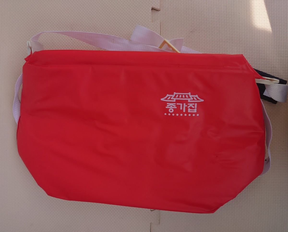 - クーラーバッグ 宗家 キムチ ロゴ マーク 赤 レッド ファスナー付き 保冷バッグ 肩掛け ノベルティ? チョンカキムチ 韓国