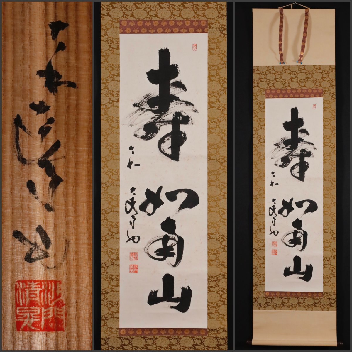 - 【模写】吉】10183 河野清晃 書「寿如南山」 共箱 真言宗 大安寺 奈良 福岡県の人 仏教 茶掛け 茶道具 禅語 掛軸 掛け軸 骨董品