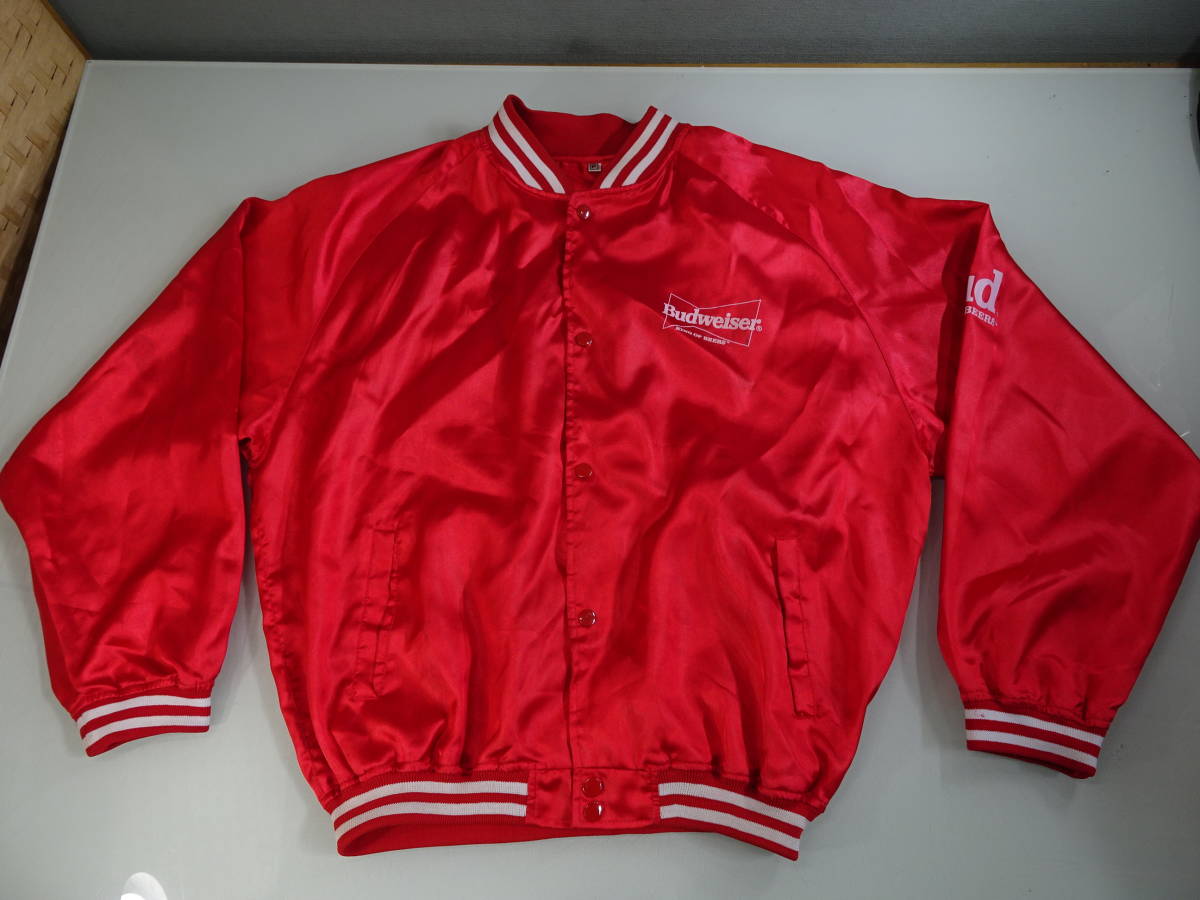 - Budweiser/バドワイザー フリーサイズ 昭和レトロ 当時物 当選品 シミ・汚れあり 現状 中古 ジャケット ジャンバー 赤ブルゾン
