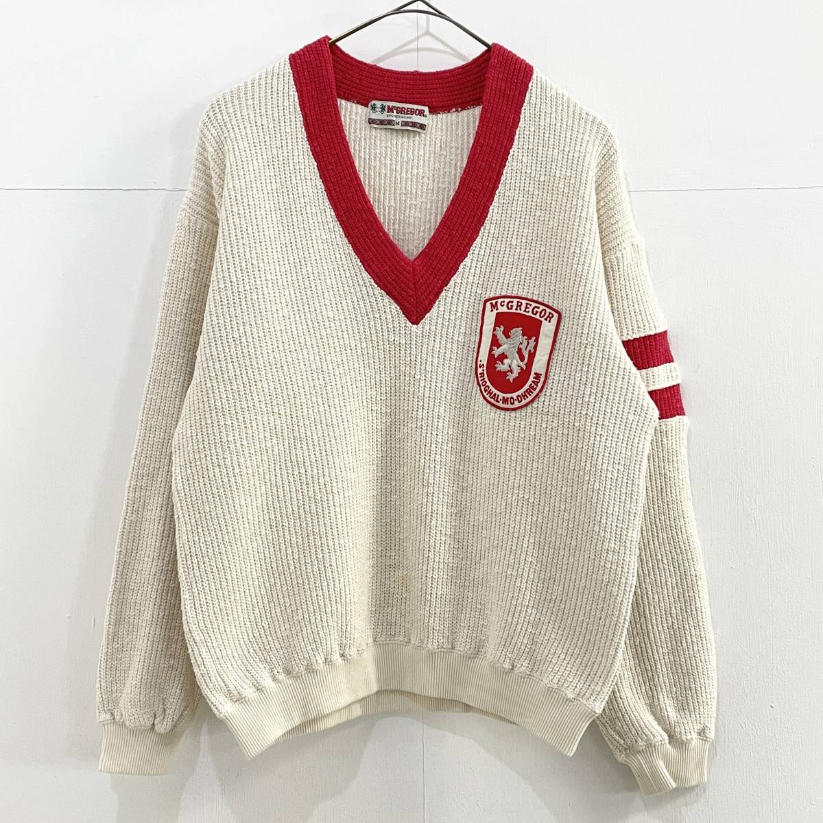 - ☆McGREGOR マックレガー Vintage 刺繍ワッペン チルデンセーター Vネックコットンニットセーター M オフホワイト【送料一律/同梱可能】G