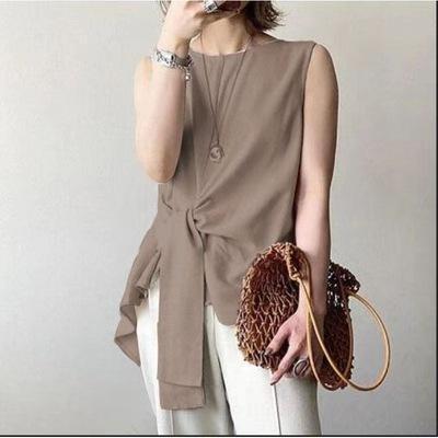 - 【ブラウン色★Mサイズ】袖なしシャツ/ブラウスレディース
