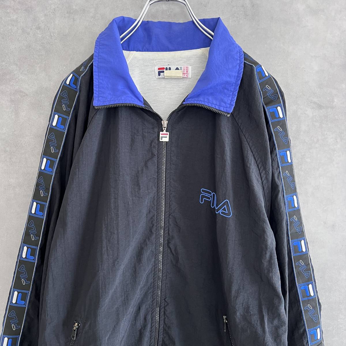 - 90s FILA フィラ ナイロンジャケット XL 黒×青 ヴィンテージ 古着
