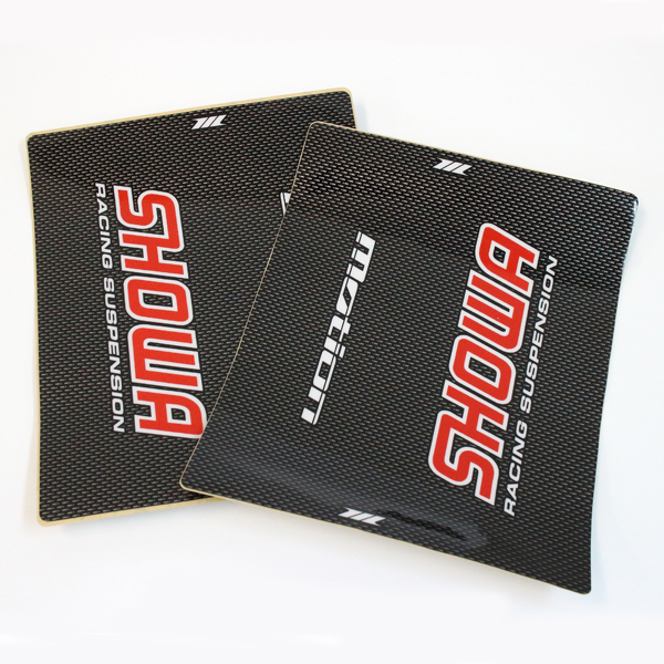 - MOTION フロントフォークアウターデカール SHOWA / レッドホワイト(カーボン柄ベース) 【クロネコネコポス便¥253】