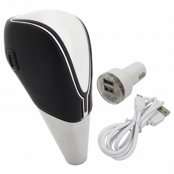 - 【タッチセンサー搭載!】汎用 LEDシフトノブ ブルー 青 全面点灯×黒レザータイプ トヨタ車 内装イルミ EL ブラックレザー