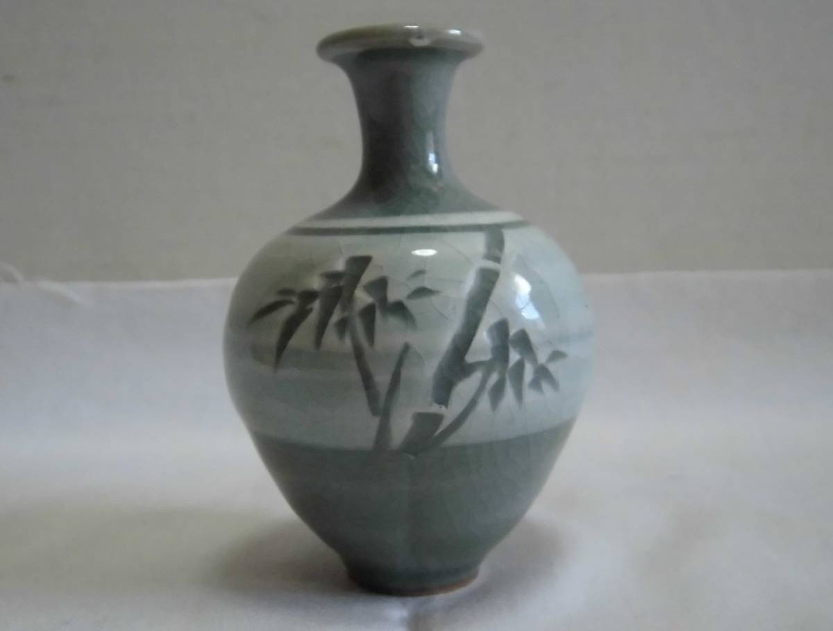 - 小さい 花瓶 一輪挿 青磁 花さし 花器 華道 茶道具 陶器 工芸品 フラワーベース レトロ