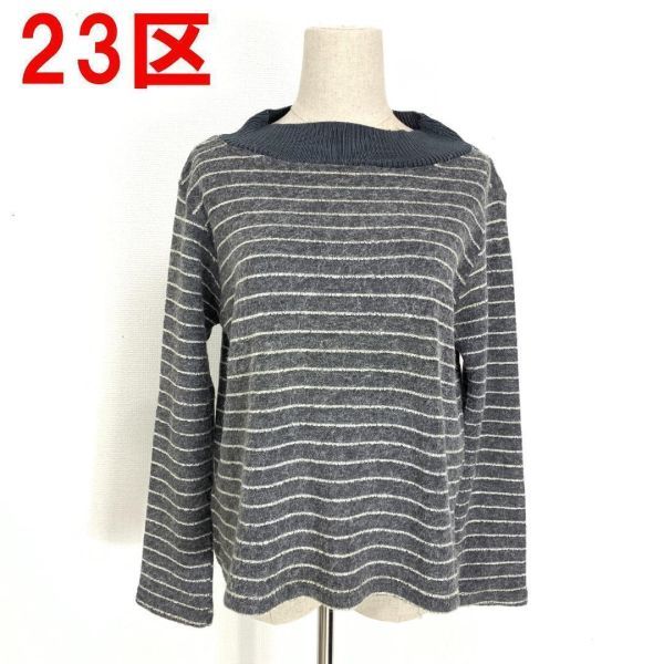 - A1391 23区 長袖ニット カットソー ウール ボーダー グレー ボートネック 38