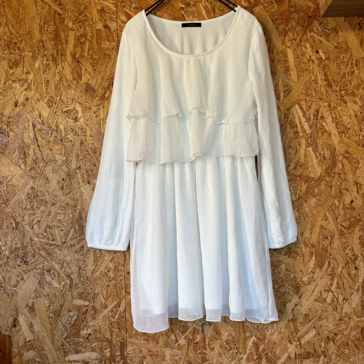- 美品 rienda ワンピース フリル 長袖 ワンピース 生地切替 ホワイト ミニワンピース ウエストゴム 2759
