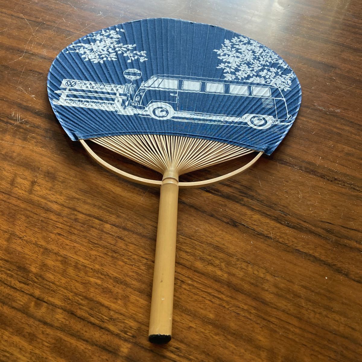 - うちわ フォルクスワーゲンジャパンセールス 2011年 VJSバス 紺色 竹 インテリア