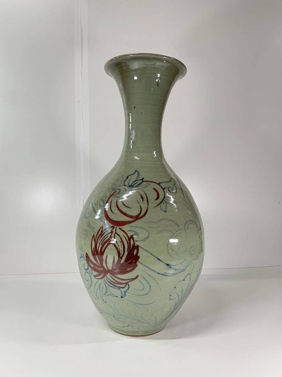 - t16 高麗青磁 花瓶 花器 唐物 在銘 壷 特大 希少