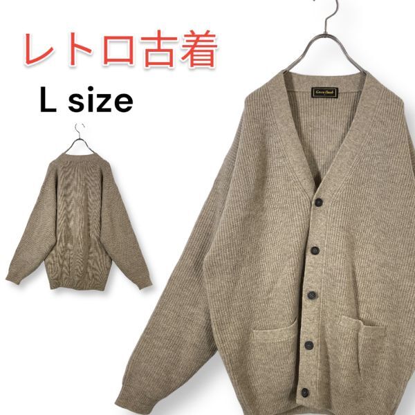 - 【美品】レトロ ビンテージ 90s ウール ニット カーディガン ブラウングレー シンプル 匿名配送