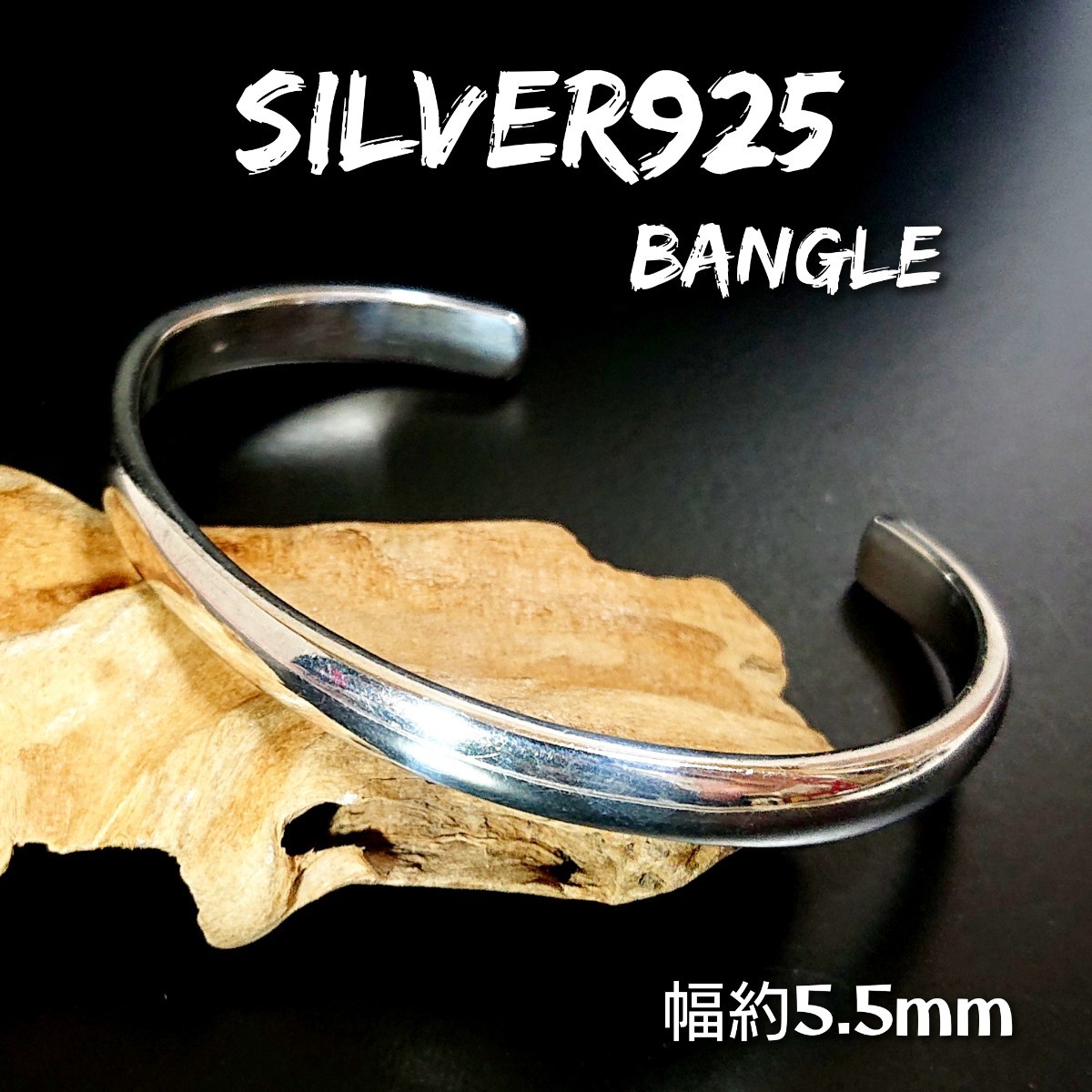 - 2496 SILVER925 バングル 甲丸線 シルバー925 幅約5.5mm シンプル 細身 無地 無垢 ユニセックス ハンドクラフト材料 カマボコ型 素朴