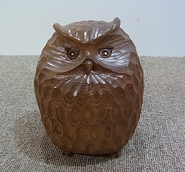 - 【NG363】木彫り フクロウ ふくろう 不苦労 縁起物 ミミズク 幸運の鳥 梟 全長約15cm