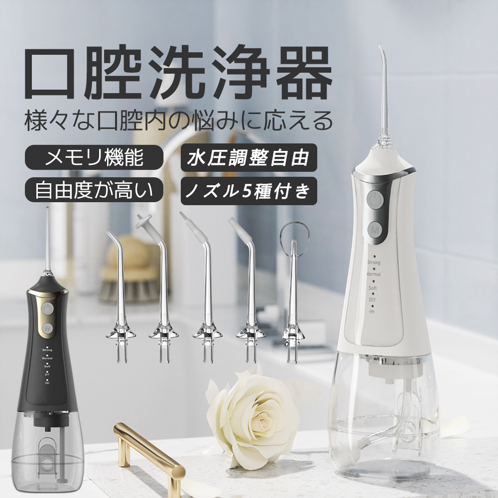 - 口腔洗浄機 コードレス口腔洗浄機 コンパクト 風呂 口腔ケア 口腔洗浄器 300ml大容量タンク 歯間洗浄機 防水 USB充電式