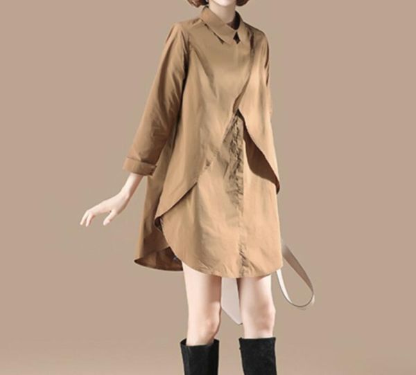 - 新品* 長袖 大きいサイズ ブラウス シャツ おしゃれ チュニック 無地 レディース トップス ゆったり *カーキ*XL