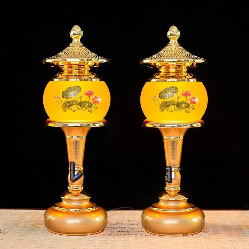 - 仏堂led瑠璃蓮華灯家庭用菩薩仏前供灯神台仏灯観音常灯一対挿電 (14寸)