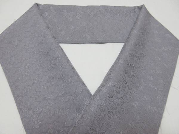 - ☆ 正絹 地厚 小柄地紋薄鼠色無地 半衿に! 細工つるし飾り 17936