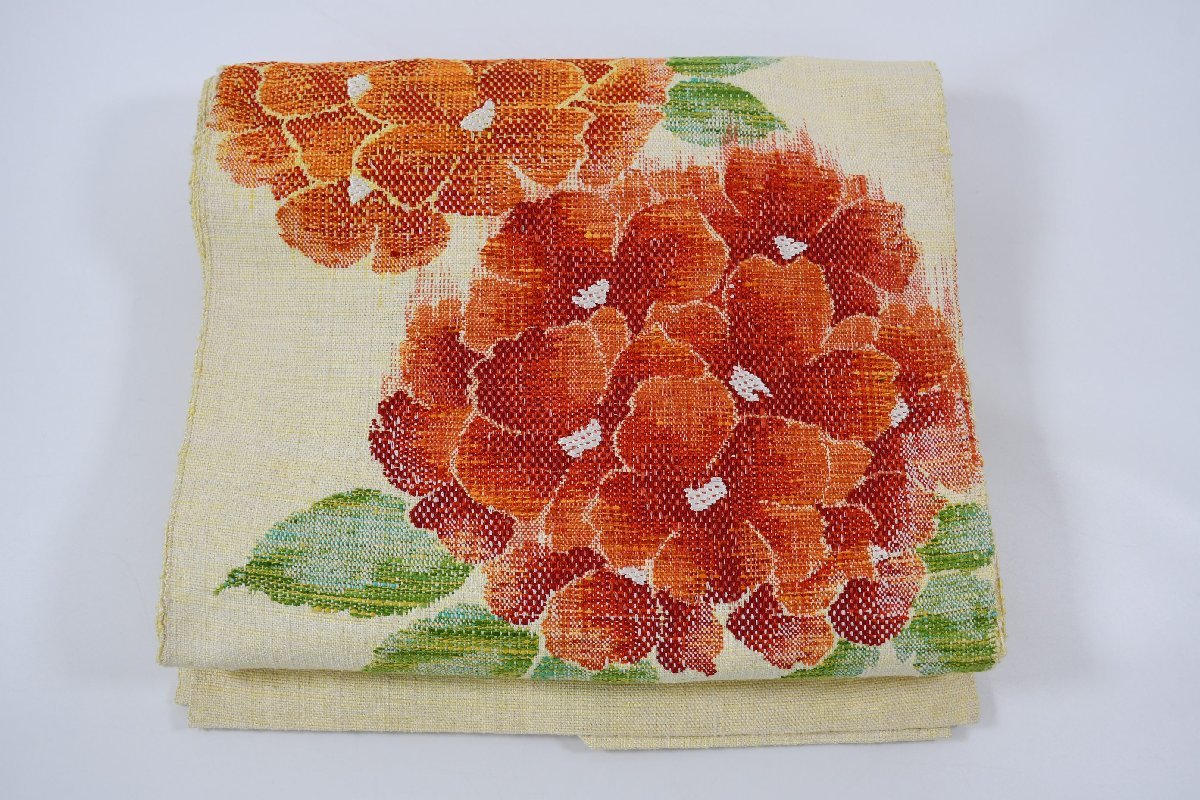 - 袋名古屋帯 紬地 花 秋草 お太鼓柄 帯丈342cm ★着物屋 ne-8277 桜庭呉服店