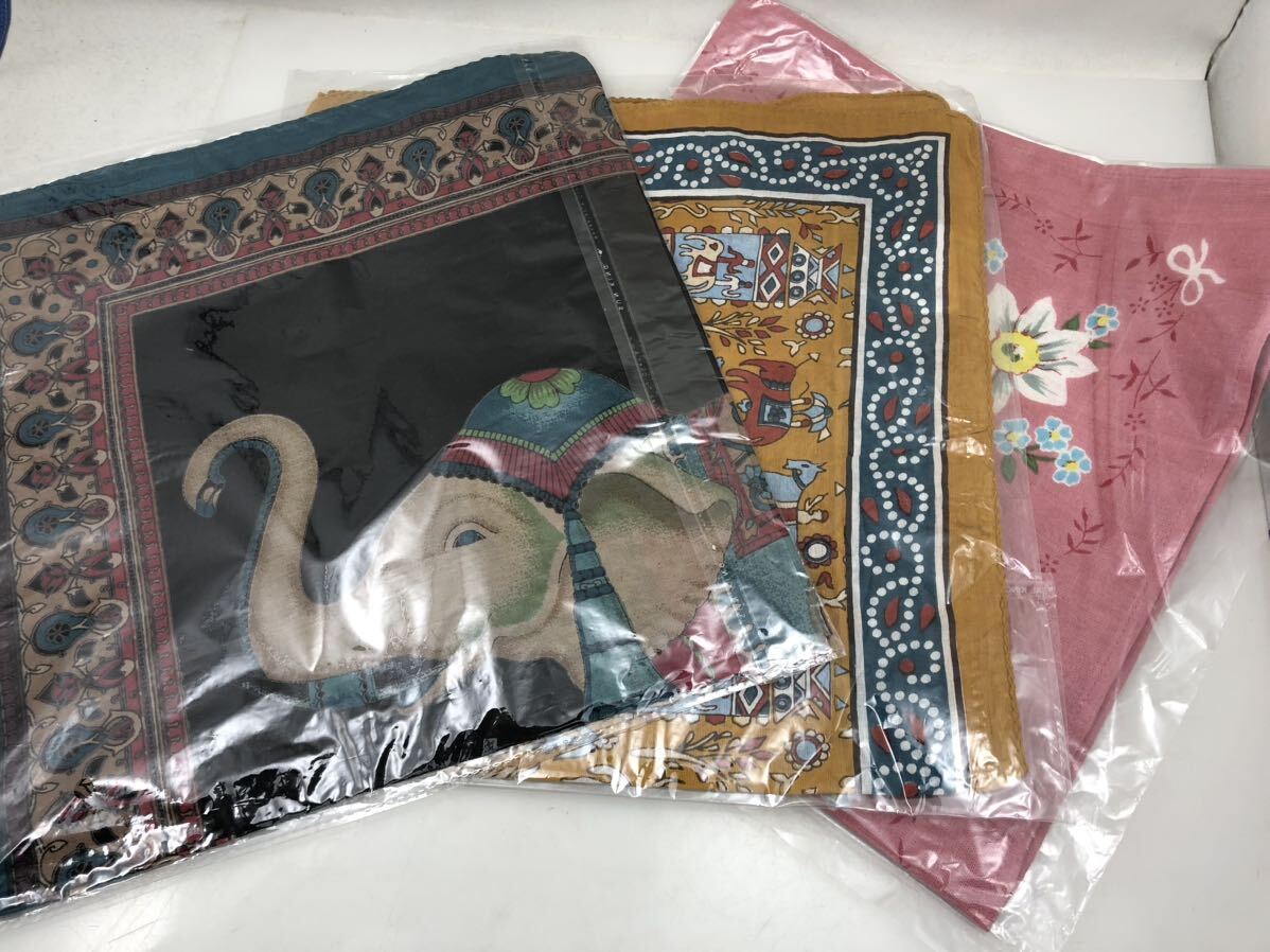 - エスニック柄 スカーフ 3枚セット ストール インド綿 コットン ゾウ 象 アニマル 動物 花 アジアン雑貨 送料込み ⑥