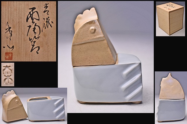> 林秀行 ★ 青磁 酉 陶筥 ★ 共箱 ★ 蓋物 ★ 合子 ★ 置物 ★ 干支 ★ オブジェ ★ 香合 ★ かわいい ★ ニワトリ