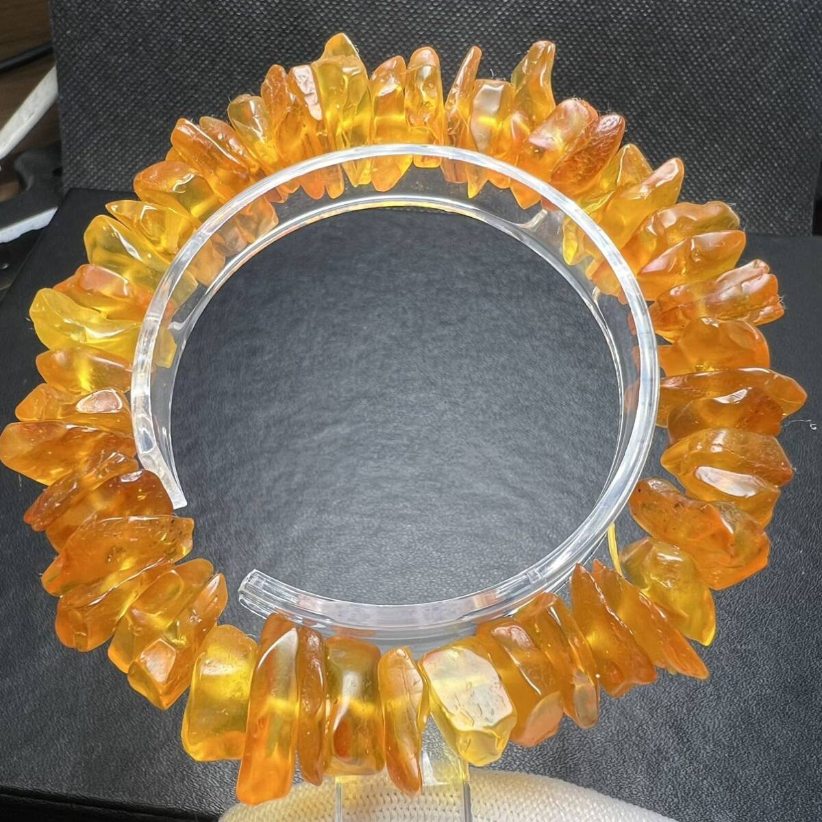 - 【63136】天然 アンバー 琥珀 13-15mm ブレスレット 天然石